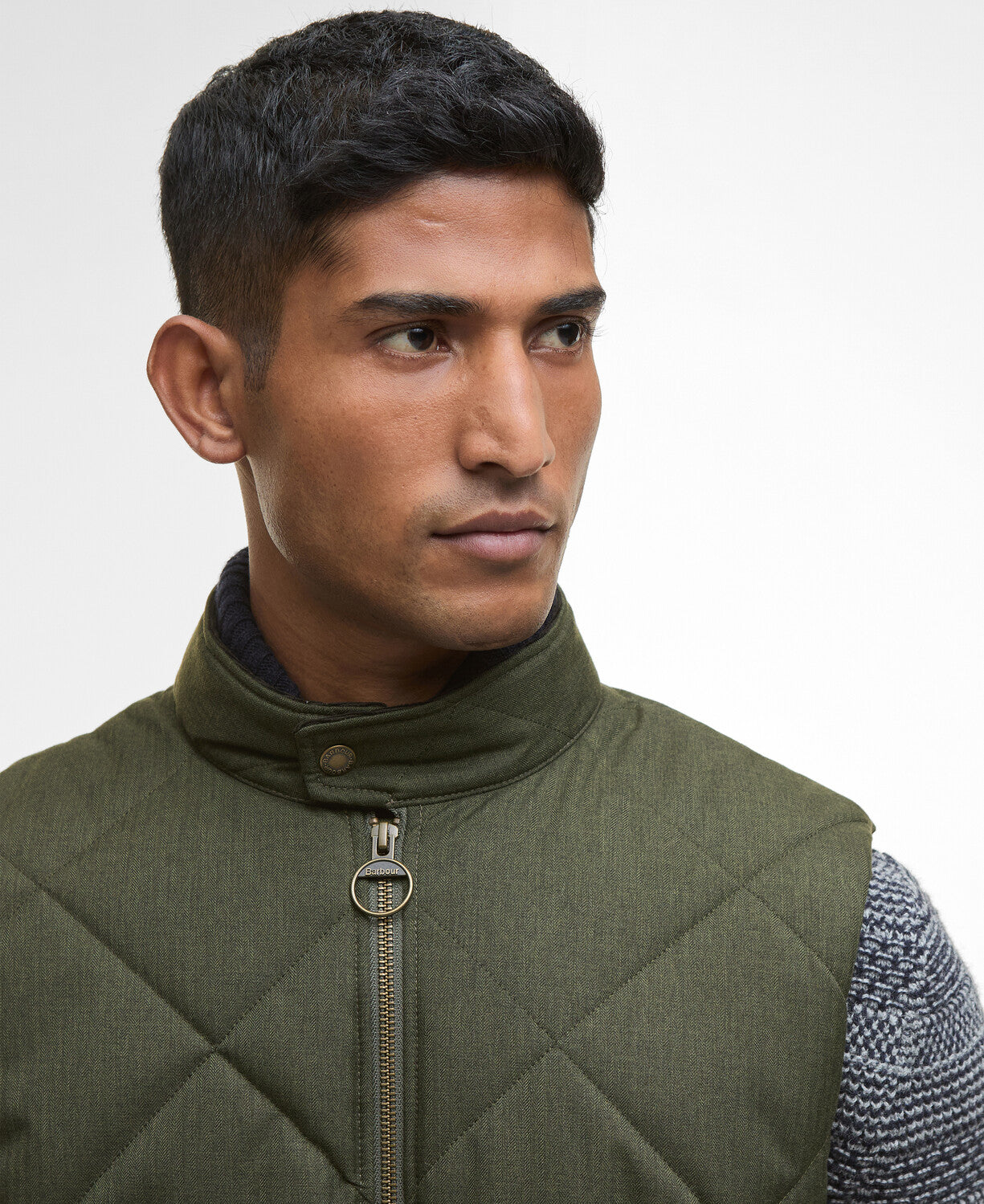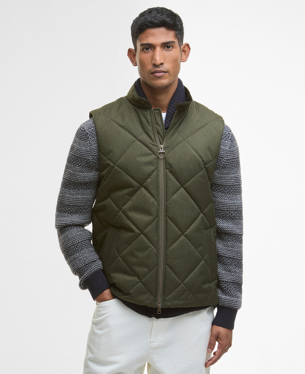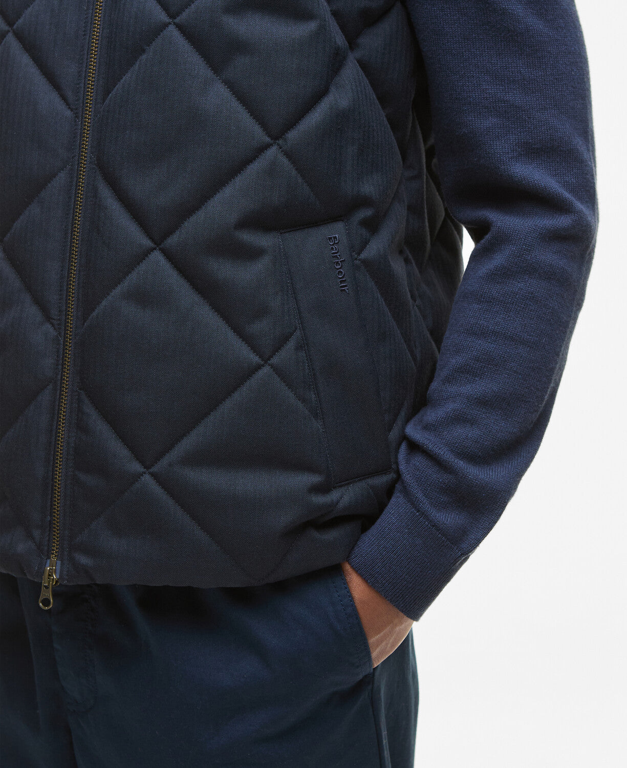 The men’s Barbour City Harrington Quilted Gilet is versatile layering piece, featuring a box quilted design with a brushed herringbone finish and practical details, suited for smart-casual wear. It is a well-regarded gilet known for its quality and classic Barbour style. The City Harrington gilet features a shaped stand collar with stud closure, metal zip front closure, lower welt pockets and elastication to the inner hem.