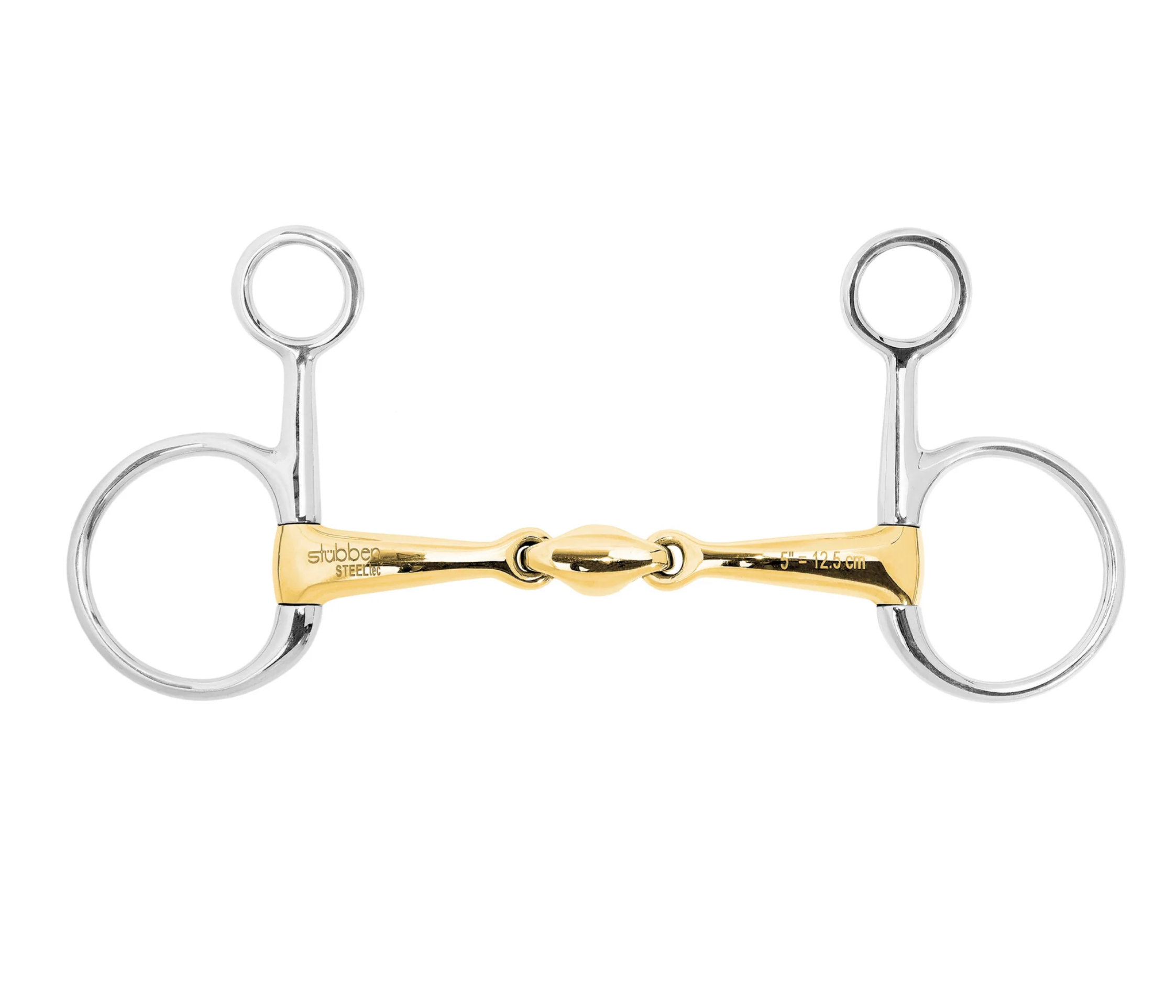 This bit features a double-jointed mouthpiece that evenly distributes pressure across the tongue and bars, promoting better acceptance and encouraging chewing. The high copper content (90% copper, 7% iron and aluminum) offers a sweet taste that is well-received by horses, and the bit is nickel-free for added robustness.