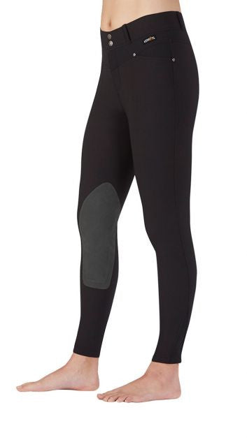 The Kerrits Ladies Cross Over Knee Patch Riding Breech gives you a precision fit with Dynamic Extreme fabric technology that stretches while providing "no-show" coverage. More tailored, and more comfortable, these breeches bring you the best of both worlds: traditional styling and cutting-edge fabric and design.