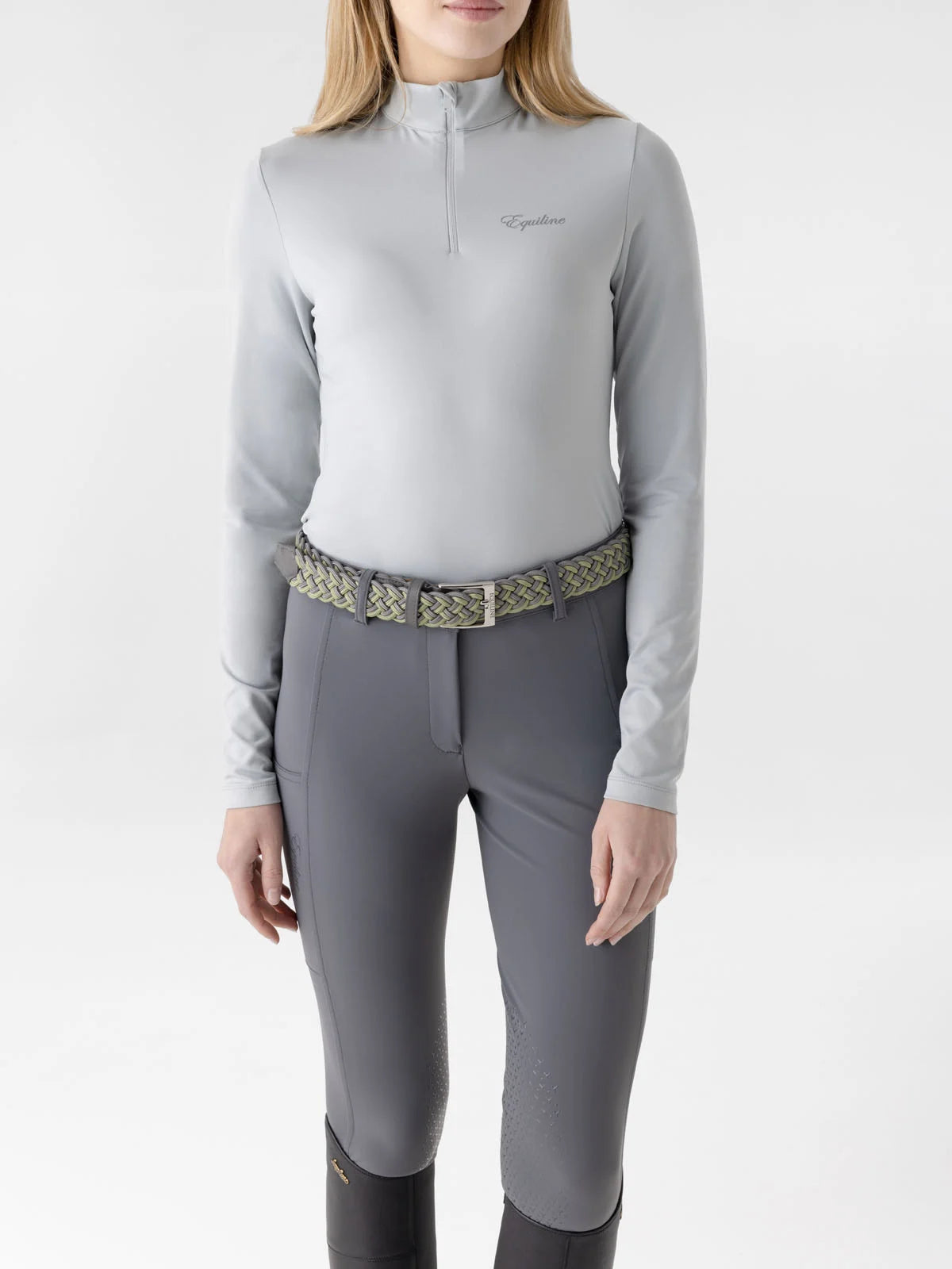 The Equiline Estrae women’s Second Skin Training Shirt with UV Protection, a sleek and slim-fit Equiline zipped garment tailored to keep you dry during high levels of activity. Crafted from advanced technical fabric, this second skin ensures exceptional comfort, breathability, and UV protection with a UPF rating of 30+. Designed for maximum freedom of movement, this second skin provides the perfect fit, allowing you to move effortlessly during any activity. The Equiline lettering logo on the chest, presented in a darker tone, adds a touch of sophistication to the garment. Embrace unparalleled comfort and protection with the Estrae Second Skin, where innovative design meets high-performance functionality, ensuring you stay comfortable and protected during your active pursuits.
